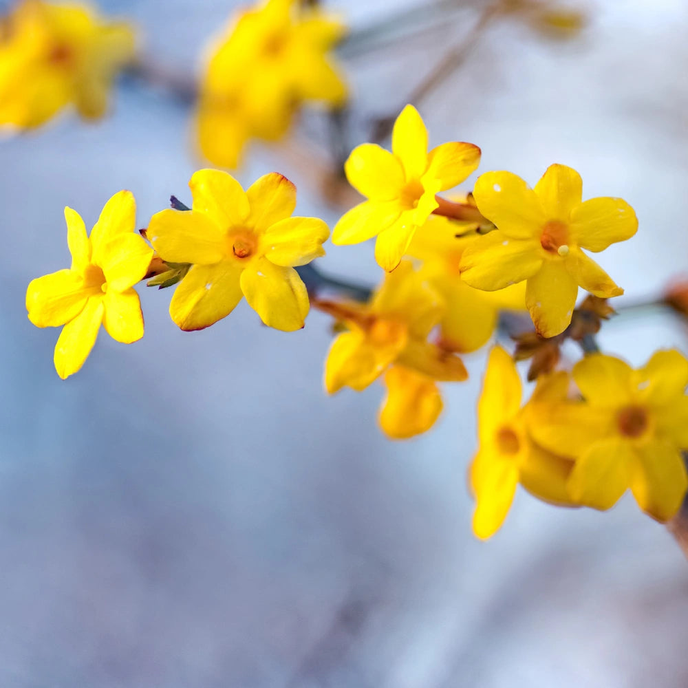 Offrez-vous une décoration d'intérieur délicate réalisée avec des fleurs de jasmin jaune et de fines pétales de bleuet. Ce contraste élégant entre le jaune et le bleu apporte une touche raffinée et poétique à la bougie.