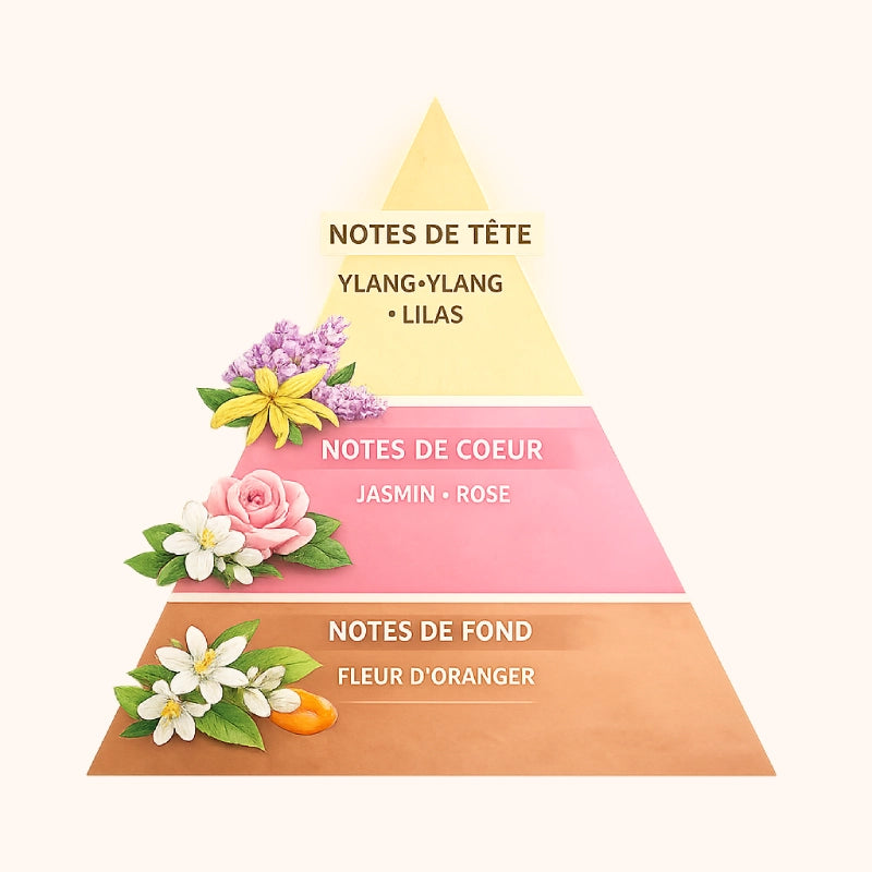 - Notes de tête : Ylang-ylang, lilas